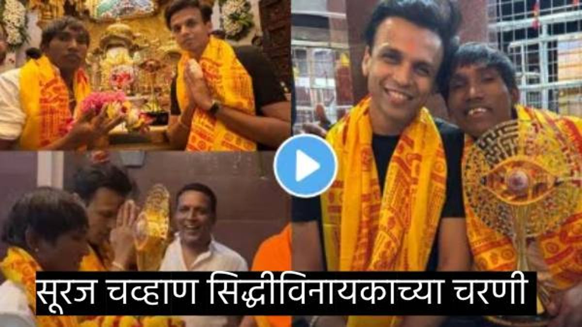 गणपती बाप्पा मोरया... सूरज चव्हाणने घेतले सिद्धीविनायकाचे दर्शन, ट्राँफी ठेवली बाप्पााच्या चरणी