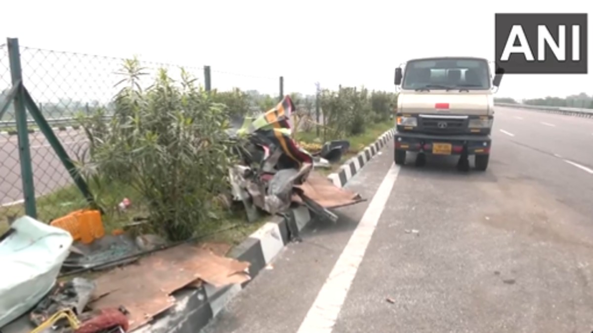 #WATCH | Uttar Pradesh: Visuals from the Lucknow-Agra Expressway in Unnao where a bus collided with a milk container in which 18 people lost their lives and 19 others were injured. pic.twitter.com/abuFTDGh1M